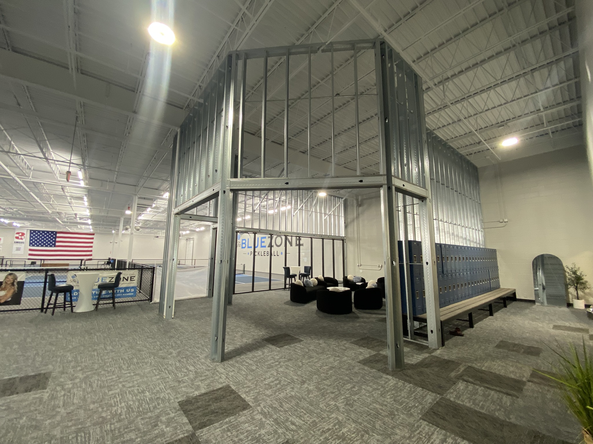 Our teams are currently working on remodeling a large portion of the Blue Zone Pickleball building, located along US Hwy 53 on the north side of LaCrosse. Several courts have been sectioned off and we are adding commercial spaces. Additionally, some remodeling is taking place within Blue Zone, adding a lounge area.