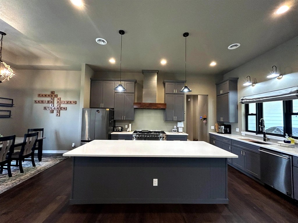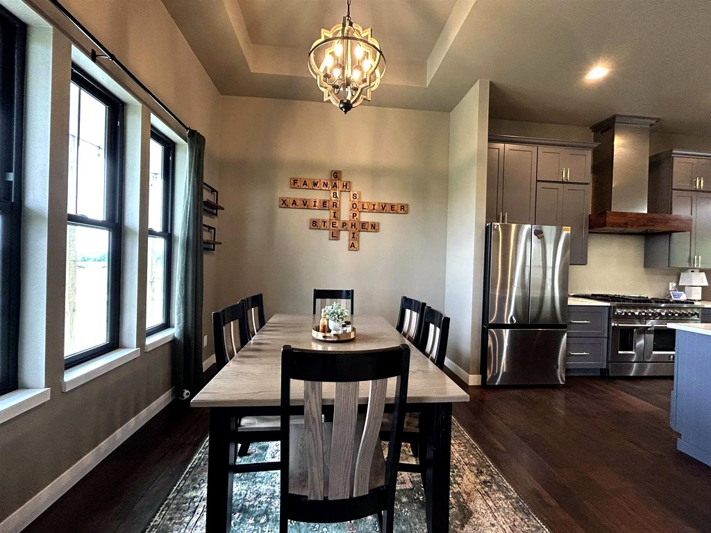 Americon built this 2,800 square foot craftsman home during 2024 in Black River Falls. It features a covered front entry, upper level master suite, eat-in kitchen island with granite countertops, dining room and much more.