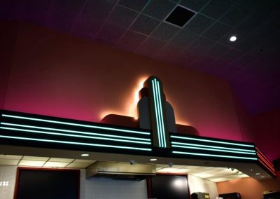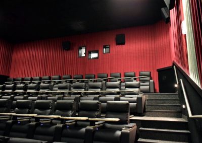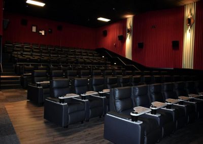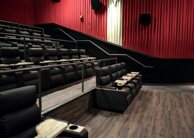 Remodeling included re-structured seating rows, all new chairs and flooring, new paint and remodeled concession, restrooms, and entryway. The exterior was completely repainted, and parking lot resurfaced.