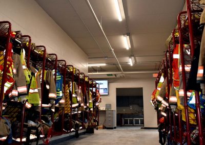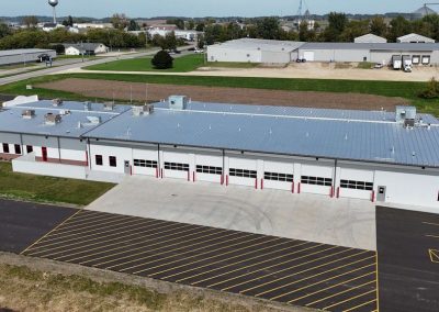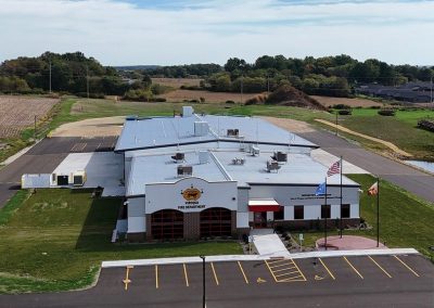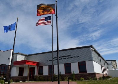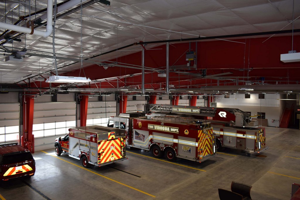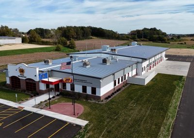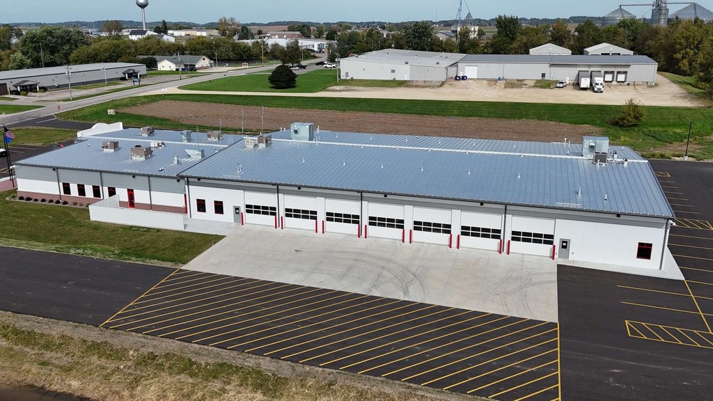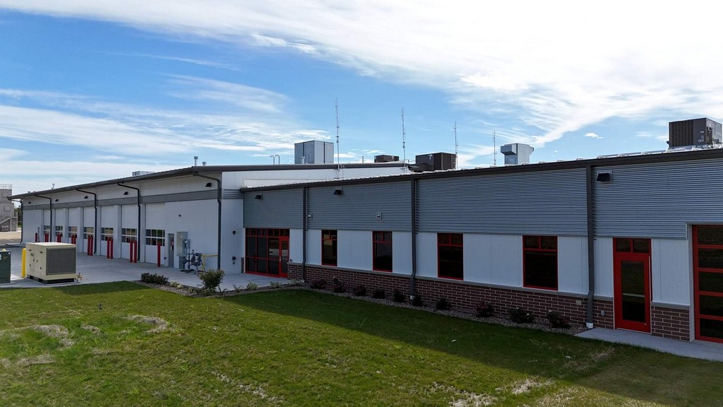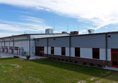 This project began in 2024 and was completed in October of 2025. The 27,300 square foot building includes a heated garage with floor drains and 14 overhead doors. A loft on both ends, offices for chiefs, inspectors & EMS, a conference room, training rooms, a full commercial kitchen, dispatch center, laundry, 4 sleeping quarters, washrooms, a shop, and more.